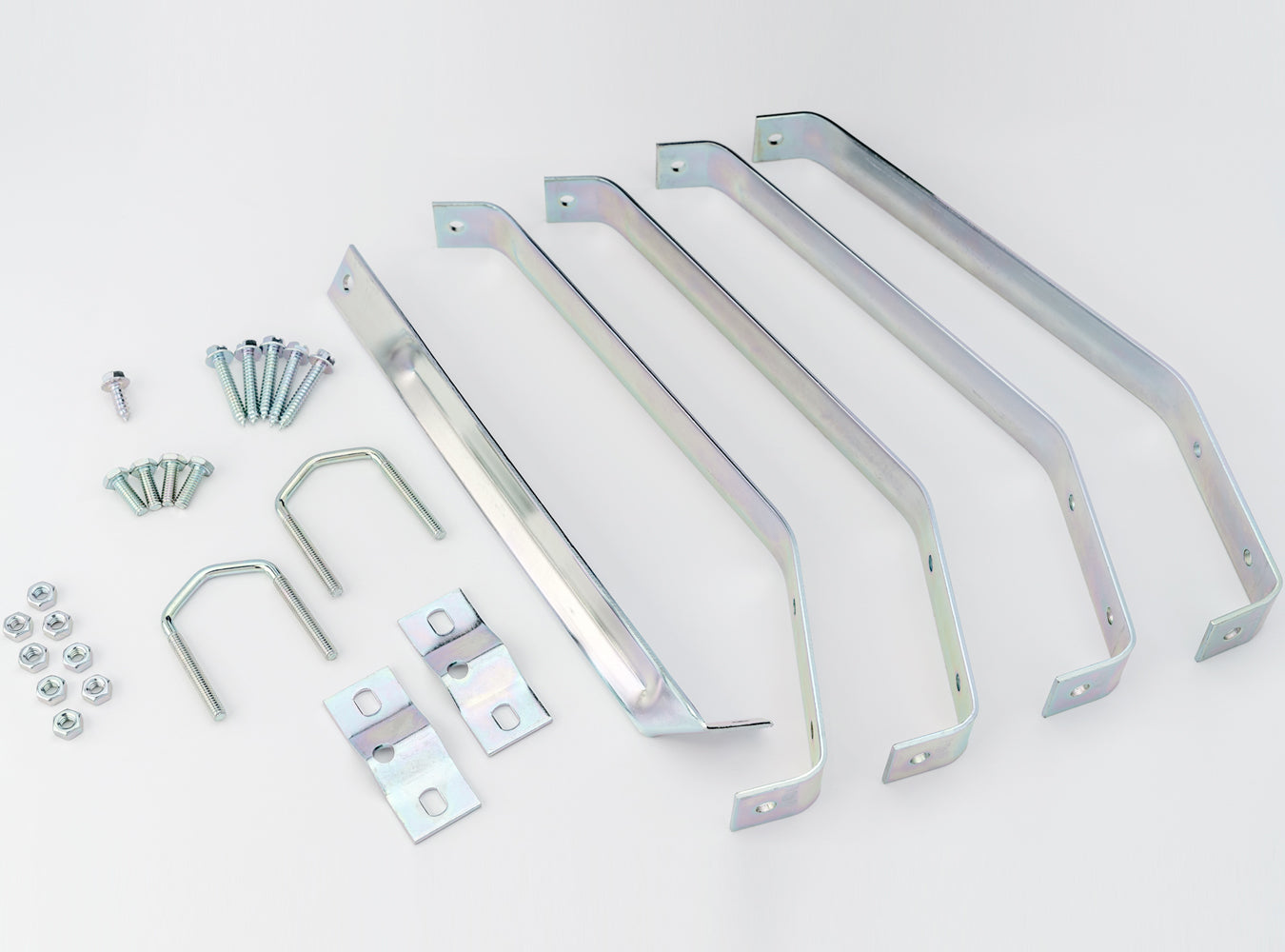 (2) 12” Mounting Brackets, (2) U-Bolts, (4) Carriage Bolts, (5) Wall Screws, (1) Set Screw