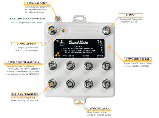 8-Port TV Antenna Distribution Amplifier5.0 / 5.0