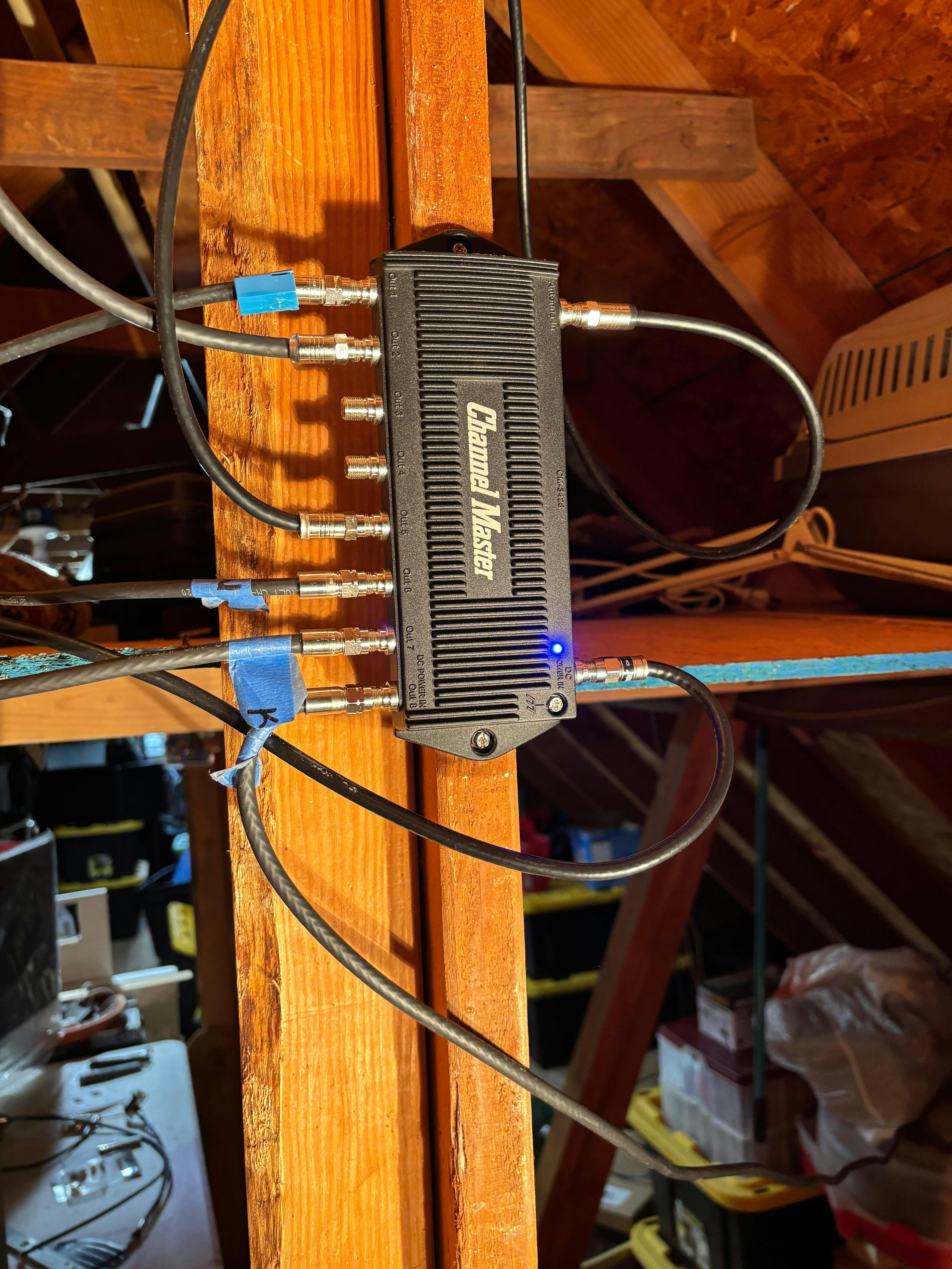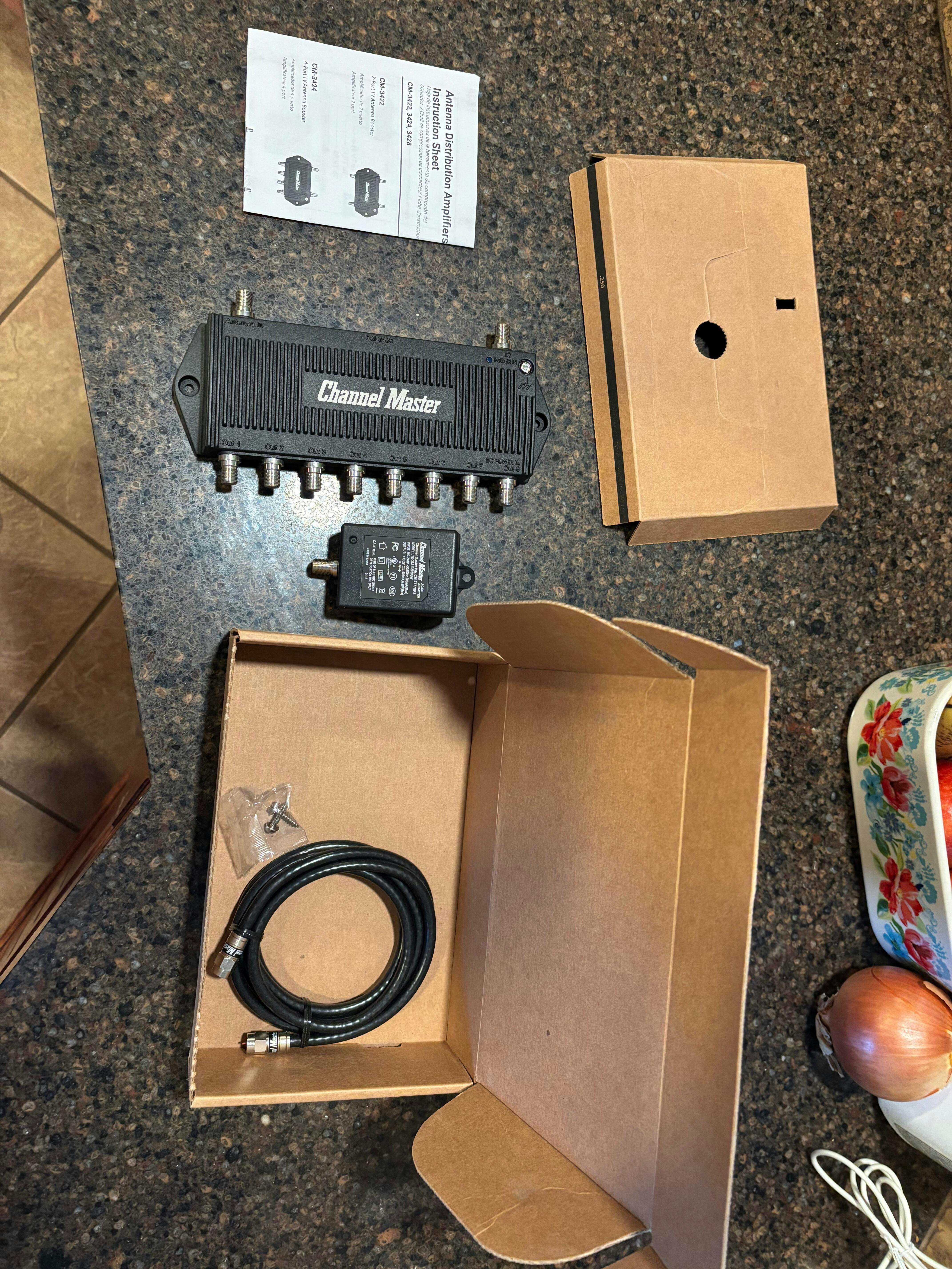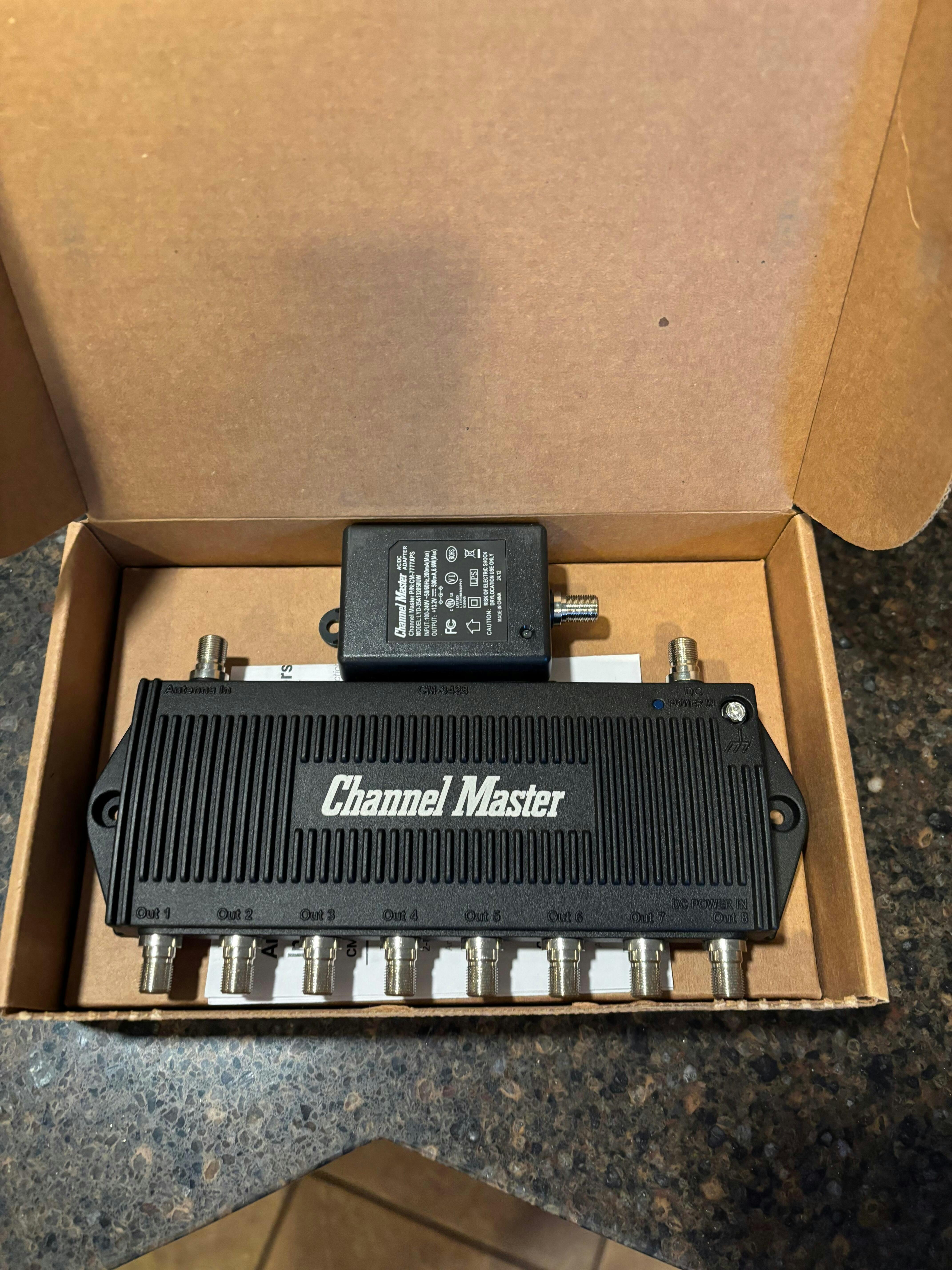 TV Antenna Booster 8 Distribution Amplifier, Power Adapter, Coaxial Cable, User Guide
