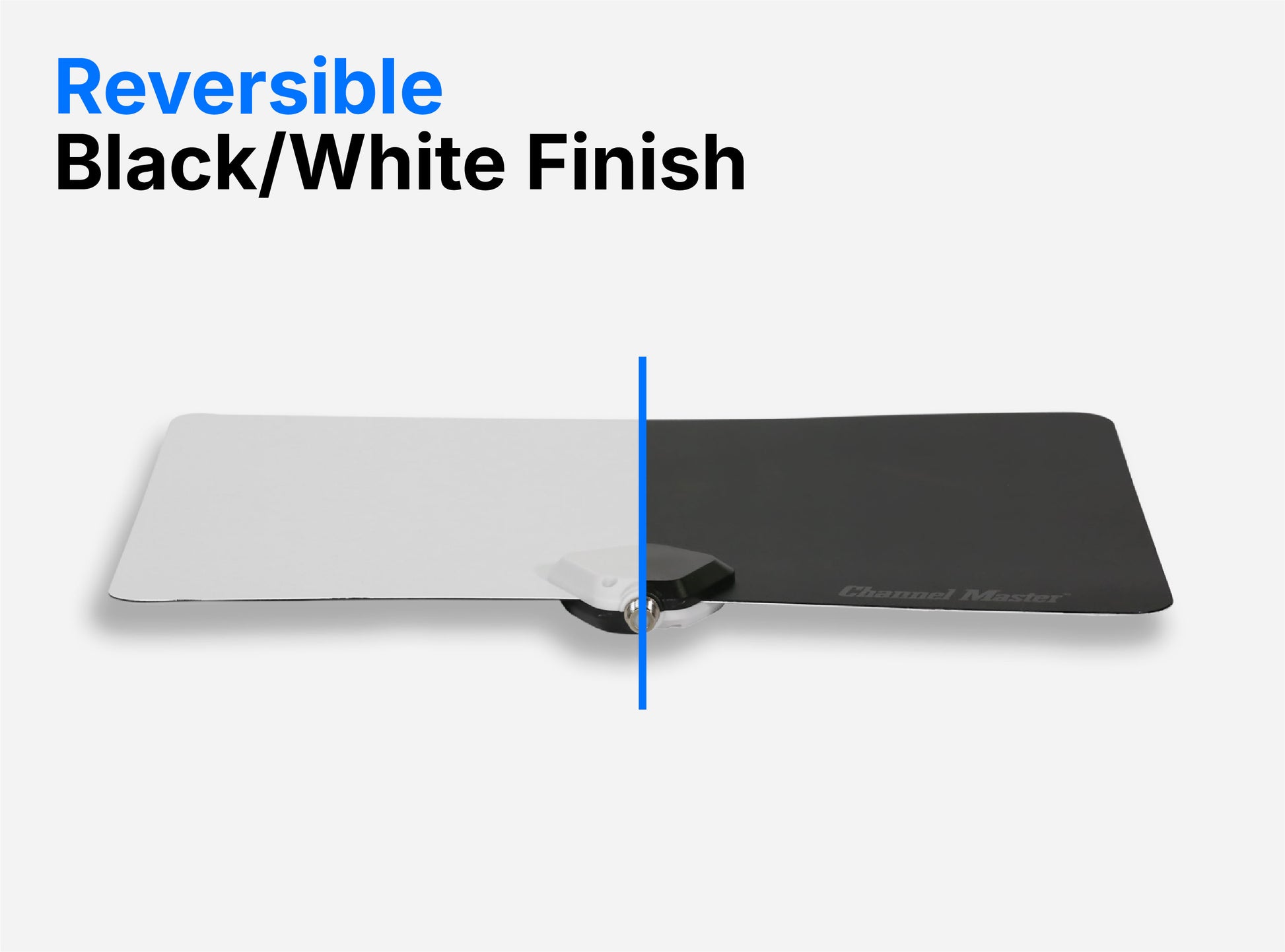 The FLATenna is a flexible, paper-thin indoor TV antenna able to receive over-the-air (OTA) broadcast signals from 35 miles. The reversible black and white finish provides added versatility for moving the antenna to different locations in the home while remaining aesthetically pleasing. The FLATenna provides free live digital TV networks including ABC, CBS, FOX, NBC, PBS, The CW, Univision, Telemundo and more.